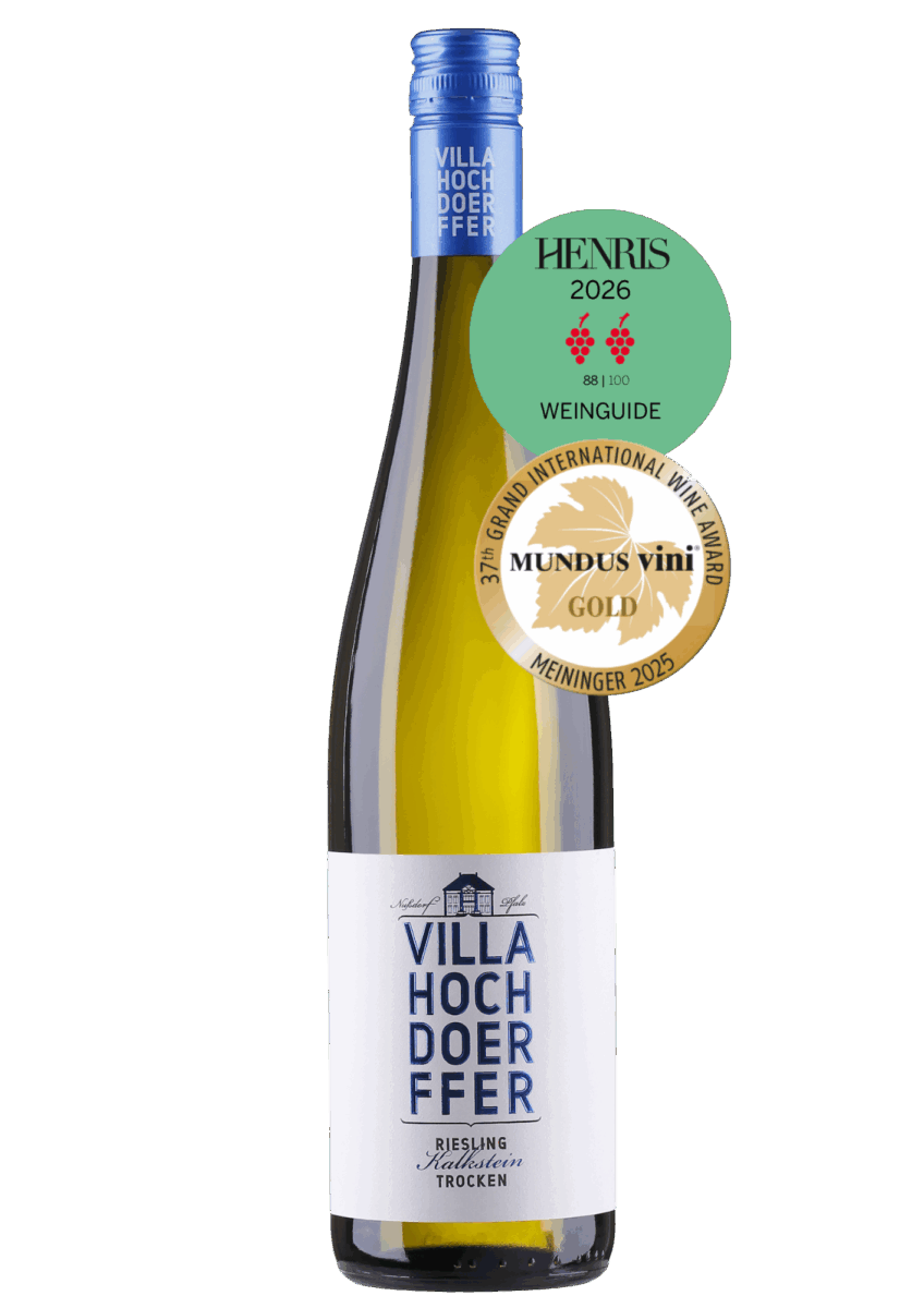 Dieser elegante, zartgelbe Riesling verströmt im ersten Moment des Hinein-Schnupperns den frischen, etwas herben Duft von Grapefruit, Zitrone und grünem Apfel. Erst allmählich entfaltet das komplexe Bukett seine ganze Fülle: zunächst mit dem exotischen Duft von Ananas, dann mit den charakteristischen gelben Früchten Aprikose und Pfirsich, untermalt von einem Hauch Brioche. Am Gaumen werden diese Aromen von einer gut eingebundenen, für Kalkböden typischen, mineralischen Säure getragen, im Abgang dominieren frische Zitrusnoten den komplexen Körper.